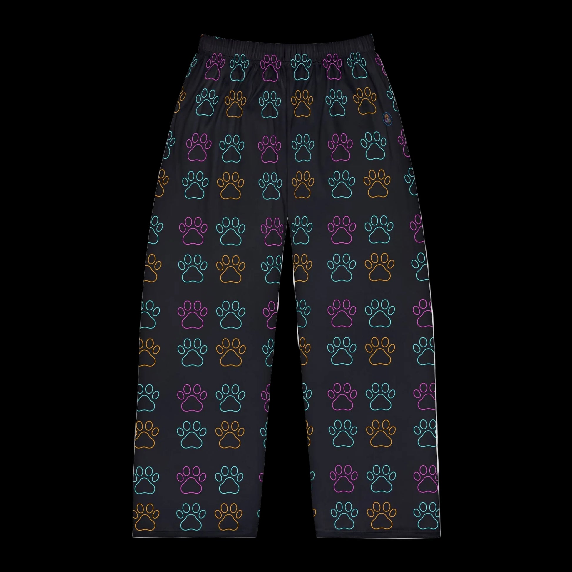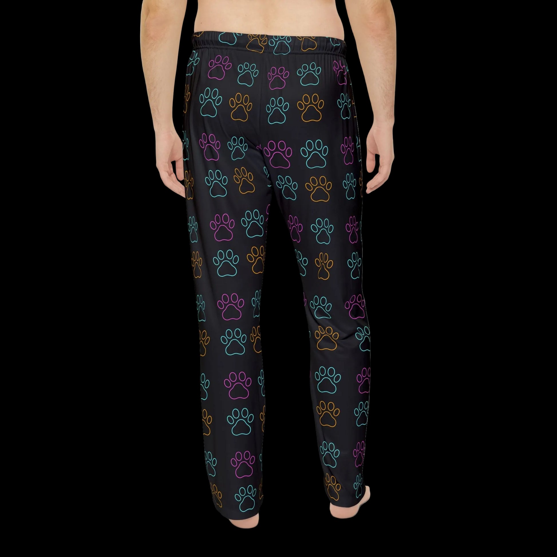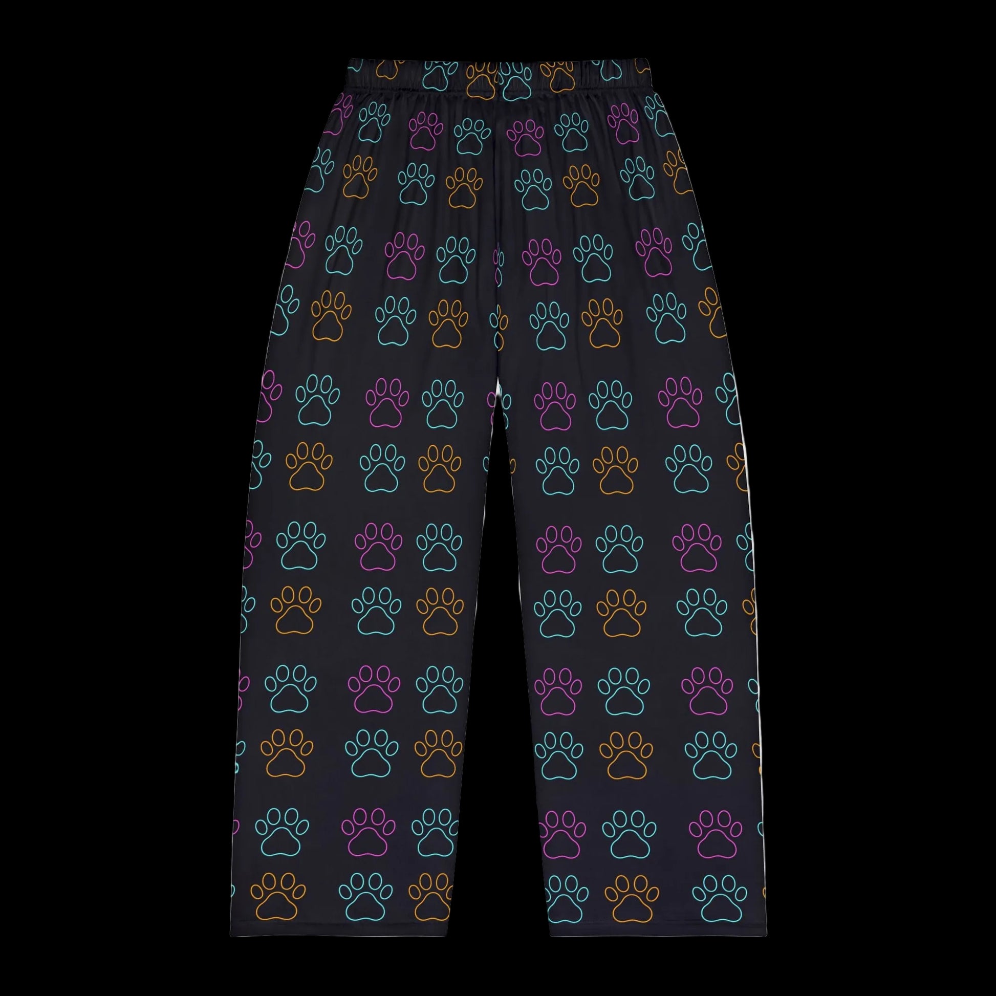 Slide into evenings that feel like a warm, familiar hug. These lightweight pajama pants breathe easy while keeping a soft, brushed touch against your skin. The charcoal background lets the playful neon paw-prints pop in teal, purple and amber, a quiet nod to late-night cuddles, midnight walks, and the small rituals that make home feel like home. The elastic waistband and smooth, printed-in label keep comfort simple and fuss-free. Wear them for slow mornings with coffee, couch movie nights, or when your furry friend insists on sharing the blanket.